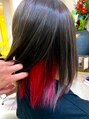 髪質改善インナーカラー レッド ミディアムストレート/ホットペッパービューティー