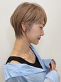 マッシュショートでカット。レイヤーを入れて完成。ブリーチ後、マロンベージュでカラーし、アイロンで丸みを作ってスタイリング完了。オイルをつけて仕上げる 学割U24