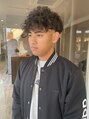 メンズスタイル 残ったパーマを生かしてスタイリングしてあります。