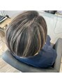 分け目白髪と顔周り白髪を狙い撃ちしたブリーチスタイルハイライト/白髪ぼかし/フェイスフレーミング/白髪染め