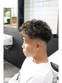 王道のフェード×パーマスタイル。今回はバーバーっぽく上に残る髪をスクエアシルエットに。迫力が出て男性らしいカッコ良さが◎ワックスでもグリースでもカッコよくセットできます。