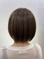 今回はハイライトが入っていてのロングからのスタイルチェンジ髪の毛の量が多い為、重たいボブではなく優しいタッチで表現するショートボブスタイル