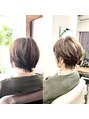 -5歳を叶えるショートカット。お悩み→すぐに白髪が目立ってしまう、短めにカットしてもすぐぺったりしてしまう。髪質がふくらみにくいのでトップにボリュームがでにくいので面長が強調されてしまうのが嫌。乾かしただけでまとまるショートになりたい。