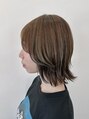 縮毛矯正をかけていた髪質を、フォルムカットにより、髪質を戻していくのが目的です。スタイルは外ハネのウルフボブスタイル。カラーは季節に合わせたカーキ系マリーン。