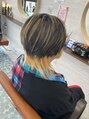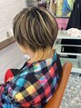 元々全体ハイライトを入れていたので、バング、サイド、襟足にインナーカラーできるよにブリーチを! マッシュウルフでメリハリをつけた個性派スタイル