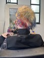 誰とも被りたくないカラー。是非お任せください!全体ブリーチでトーンアップして、毛先に遊び心のあるカラーをオン。刈り上げ部分も一度ブリーチしてペイントしてみました!!
