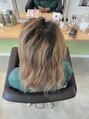 ケアブリーチで作る柔らかいハイトーンヘアです。肌なじみがいいミルクティーベージュをイン。女の子が好きなオレンジ風味を少しミルクティーに配合してかわいさをアップ。