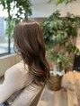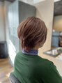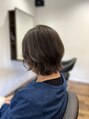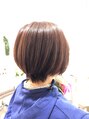 切りっぱなしボブをベースに表面はレイヤーを入れたスタイルです。ハイライトを入れて白髪をぼかしたカラーです。