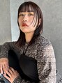 前髪,顔まわり,裾をぱっつんにラインカット,あえて全体にレイヤーを入れることで重さと軽さを出しました○顔まわりにのみ黒のローライトを入れることで,お顔がひきしまった印象に!