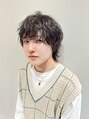ショートウルフベースにカット。14~17ミリのロッドで緩めに無造作にパーマし、仕上げは8割ドライ後オイルワックスで揉み込みながらスタイリング。