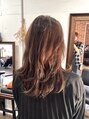 黒髪/グレーベージュ/レイヤーロング/前髪パーマ