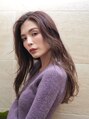 大人ロングレイヤー ボルドーカラー かきあげ前髪 センター分け