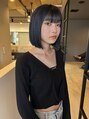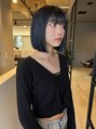 パッツンボブに1ブリーチからできるネイビーカラーです♪グレーっぽく色落ちして黄ばみの少ないベージュになります!色落ち綺麗です!