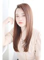 かきあげた前髪につるっと落ちる様なストレートスタイルです。毛先をまとめた作り込まない自然な雰囲気が人気のスタイルです。
