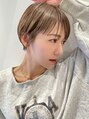 マッシュショートでカット。レイヤーを入れて完成。ブリーチ後、マロンベージュでカラーし、アイロンで丸みを作ってスタイリング完了。オイルをつけて仕上げる 学割U24