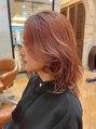 レッドオレンジ レイヤーカット ミディアムヘア ハイトーン 銀座/ホットペッパービューティー