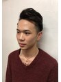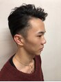 センターメインのピンパーマで癖毛風に。カットは少しツーブロフェードで大人っぽさを出したハンサムショート。