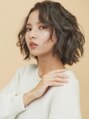 ウェーブのボブ。今季トレンドのオリーブカラーとブラウンのメイク。