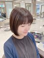 前回のハイライトを活かして、オンカラー。段差の入っていないシンプルなボブスタイルなので、遊びのあるカラーがアクセントになって◎。透明感がありややくすみ系の色味でやわらかな印象に!ハイライトを入れる施術は4,5ヶ月~半年に一度くらいでも◎です。