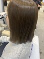 髪質改善ストレートをしています。ツヤ感やまとまりが出て、表面の気になるホワホワ毛が収まるストレートです。ダメージレスで乾かすだけでまとまるスタイルです。