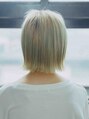 ぱつっとカットしたハイトーンのボブスタイルになります。ハイトーンカラーで個性的な重過ぎない軽い印象にし、表面と顔まわりにしっかりレイヤーが入っているので全体的にすっきりとしたクールなイメージのボブスタイルになります。