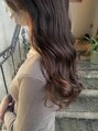 カラー前のベースが明るかったので、そこを活かして濃いめのラベンダーブラウンで深みのある透明感に☆紫や赤系のカラーは濃いめにすると鮮やかさが増すので、元々明るいもしくはベースを明るくしてから深い色味でカラーするのがポイントです♪