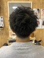 サイドはすっきり刈り上げ2ブロックに。直毛の方なので短めにカットにセットで上げやすくしてあります。