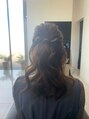 お呼ばれハーフアップヘアです!!シンプルなスタイルですがもともとのイヤリングカラーが良い感じにアクセントになりました!