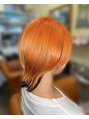 ブリーチした髪に薄いオレンジをオンカラー♪奇抜すぎない上品なオレンジに仕上がりました!えりあしは染めないで、ツートンカラーにしました!
