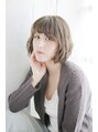 透け感のあるマットベージュ系のカラーが可愛い外ハネゆるカールは動きがあり、ボブにアレンジが欲しい方にオススメのスタイルです。