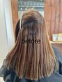 他店で施術を数回受けたが余り良くならなかったお客様です。3枚目のbeforeをご覧頂くと、根本は癖が出ているので酸性縮毛矯正が必要!毛先は今までの施術で負担が掛かっているので薬剤での施術は危険だと判断!毛先はトリートメントで保湿しましたよ♪