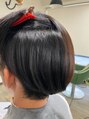 毛質は太め癖も強いです、強い薬剤を使ってしまうと不自然になってしまうのでちょうどよくちょうせつして自然にまとまるようなしあがりにしていきます。