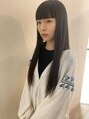 直線なストレートが雰囲気を出し前髪のパッツンでシャレ感をプラス♪シンプルなんだけど特徴的なスタイル。