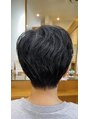 お耳まわりをツーブロックにして、スッキリ感を重視したショートヘアです。コンパクトになり過ぎないよう、クセを生かしながら、バックの丸さを出すようお切りしました♪