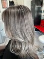 2ブリーチのスペシャルバレイヤージュです。ナチュラルな筋感で明るめのベージュとグレーで染めています