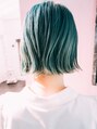 グリーン系の個性的なカラーリングでトレンド感をプラスした切りっぱなしのショートスタイルです。黒髪でも可愛いですが、カラーリングをすることで軽さとインパクトの強いお洒落感を出すことができます。気分の違ったスタイルに挑戦したい方にオススメです。
