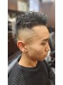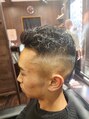 皆様ご存知、宮城リョータ風プードルパーマです。高めのハイフェードに、前髪を立ち上げる強めのパーマ。いかついイメージのフェードに、パーマをプラスする事で、男前にこじゃれ感をプラスできます。