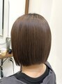 - ミニボブ ボブ 切りっぱなしボブ カット カラー ミルクティー 赤みなしカラー 透明感 アッシュ