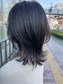全体にハイライトとインナーカラーが入ったウルフスタイル。色が抜けていく過程も楽しめるように、濃いめにカーキ系のカラーを入れています!ウルフで軽めになのでカラーが暗めでも重く見えないし、抜けていくともっと動きが出て見えます!