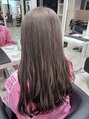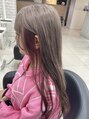 ブリーチ2回のミルクティーベージュカラー♪明るめで透明感たっぷりで可愛いカラーです^ ^♪チラッと見えるイヤリングカラーは、ほんのりラベンダーのモーヴピンクに♪【髪質改善カラー】【髪質改善】
