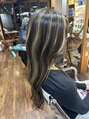 太めベージュハイライト!!!オンカラーはベージュ系で染めてます!ハイライトは太めに取りました!
