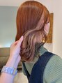 上の方はブリーチを少し混ぜてトーンアップしてからオレンジを入れてます*インナー部分は2回ブリーチベースに薄くオレンジ入れてます*