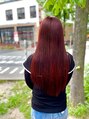 重ためラインを残してを活かしてロングヘアスタイル。色、ツヤの質感UP