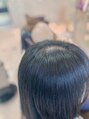 伸ばしかけでもまとまりあるヘアスタイルに。長くなってくると分け目がぺたんこになりやすいので、立ち上がりの良くなる頭皮のケアや分け目だけのパーマをおすすめいたします