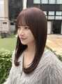 内巻きツヤ髪ミディアム×ピンクブラウン