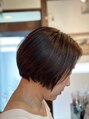 前回、思い切ってショートのして気に入って頂き、今回も更に短くの希望でした。小顔効果とお手入れらくなスタイルになりました。敏感肌専用白髪プレミアカラー+メンテナンスコースです。