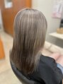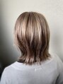 外ハネボブ。インナーを軽くしてくびれの出るスタイリングしやすいスタイルです。カラーはベージュ。メッシュもあり陰影のあるカラーリングです。