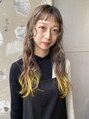 赤みを消した寒色ブラウンに、毛先カラーでイエローをデザインしました!ロングヘアにミニバングのバランスが可愛い◎フロントも透け感を使って肌に馴染むようにデザインしました。