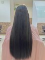 スーパーロングのローレイヤーストレート。縮毛矯正ストレートでうねりを整え、おさまり良く。サイエンスアクアで髪の中からハリ・コシをアップさせて、ツヤとまとまりのあるなめらかな仕上がりに。