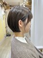 耳にかけてもかわいいかわかすだけでおさまるショートボブ!とても簡単にスタイリングできるのでショートに初挑戦の方にもオススメです^ ^似合う小顔のバランスをカウンセリングでお伝えさせていただきます♪カラーはナチュラルな落ち着いた透明感ベージュ!